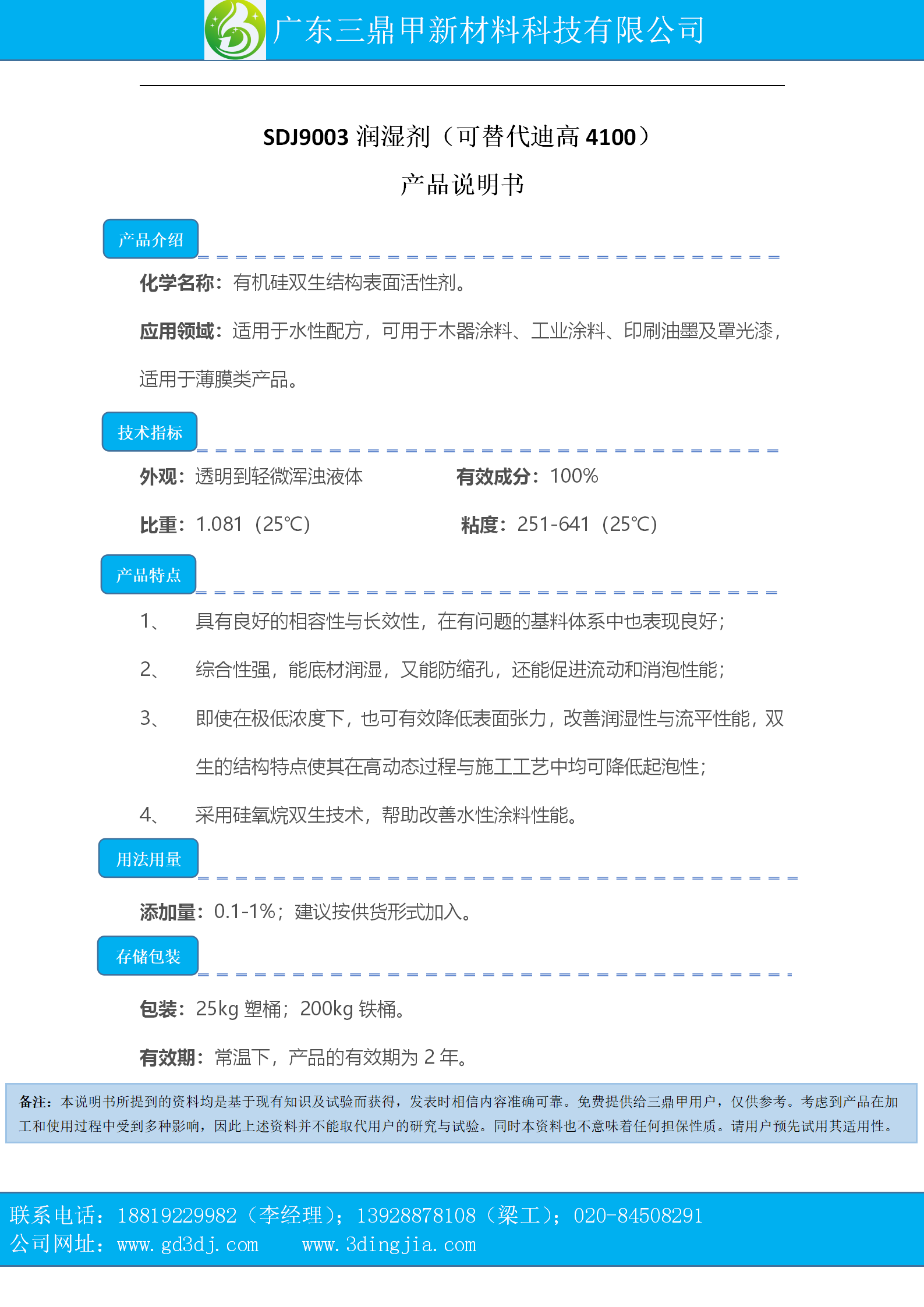 2、 综合性强,能底材润湿,又能防缩孔,还能促进流动和消泡性能;